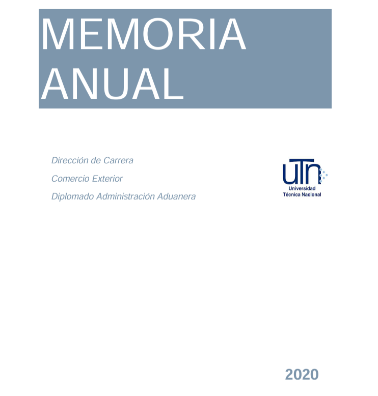 En la presente Memoria se dan a conocer las principales actividades realizadas durante el año 2020, desarrolladas por la Dirección de Carrera de Comercio Exterior en todos en sus niveles y el diplomado de la Carrera de Administración Aduanera. Al igual que en años anteriores, la dirección a cargo de ambas carreras inició el año 2020, con una cuidadosa planificación presupuestaria de las actividades a realizar en cada cuatrimestre, en aras de proporcionar a los estudiantes y docentes actividades para su formación académica y profesional, sin embargo, lo agendado para el segundo y tercer cuatrimestre fue suspendido dada la emergencia sanitaria mundial por COVID-19, que obligó a la institución a cerrar sus puertas de manera presencial a partir de marzo a la fecha, en el tanto las autoridades brinden la autorización para regresar a las clases en las instalaciones físicas y con ello las actividades extracurriculares. El 2020 fue para esta Dirección un año de estrategia e innovación, en el que se vieron reinventadas las expectativas las cuales se cumplen a través del esfuerzo de estudiantes, docentes y estas Direcciones de Carrera.